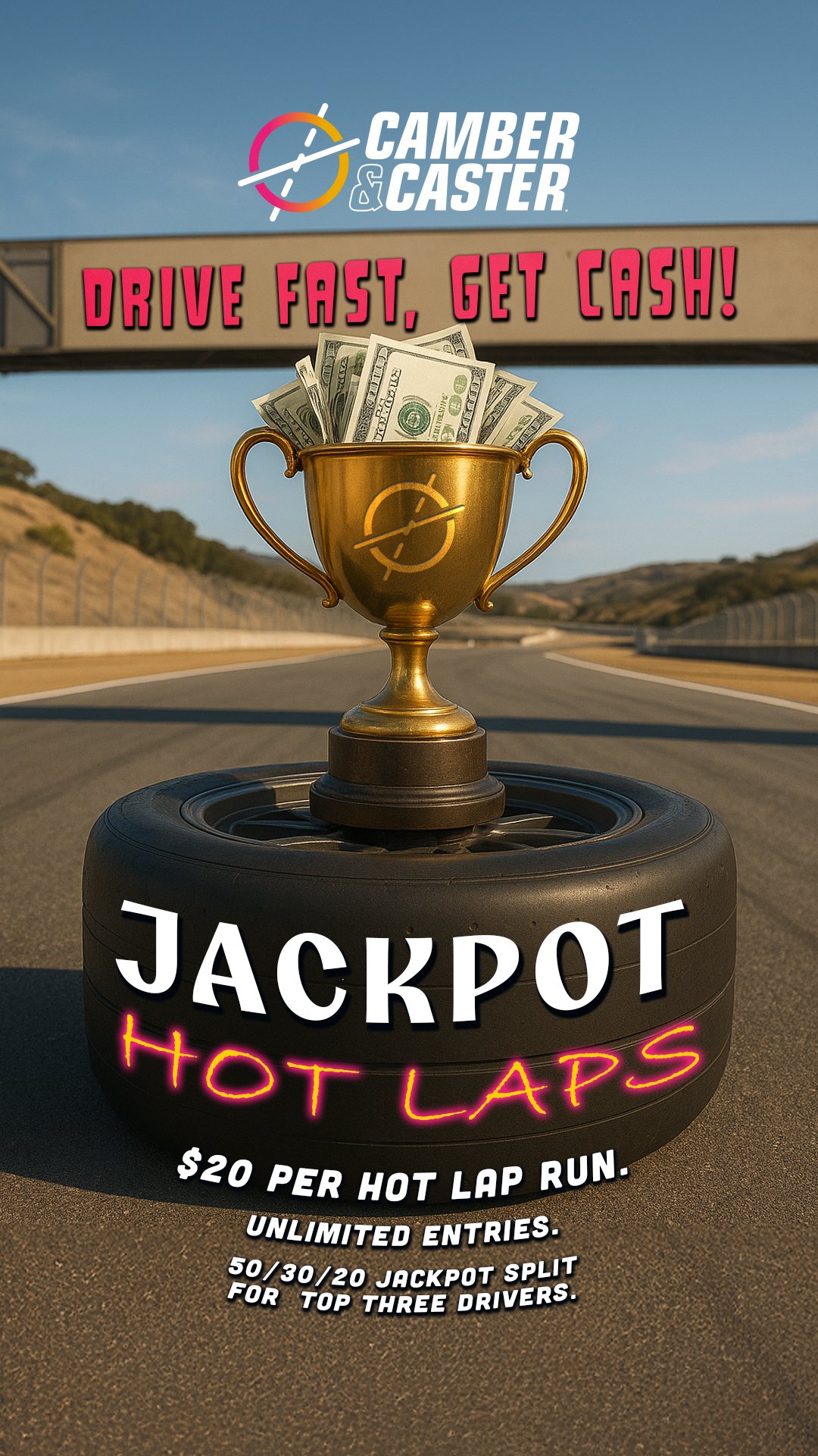 Right now all hot laps must be completed in person at Camber & Caster HQ. Payouts will be made within 24 hours of the end of the challenge via Venmo, or in cash in person. There is no age limit and no membership required to enter. All Hot Laps will be streamed live on Twitch and may be used for promotional content later on.